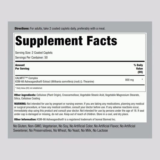 Advanced Complex Ashwagandha L-Theanine Supplement 800mg | 100 Caplets | Root Extract | Vegan, Non-GMO | Piping Rock