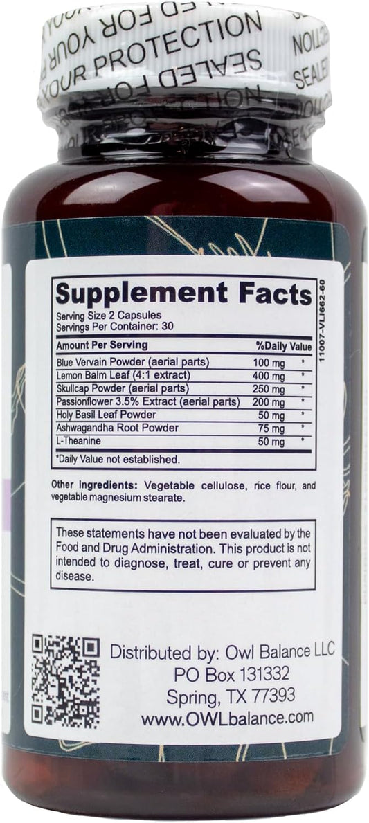 Natural Berry Stress Supplement with Ashwagandha, L-Theanine, Holy Basil, Skullcap, Passionflower & Lemon Balm for Mood, Focus & Relief - Vegan & Non-GMO - 60 Capsules