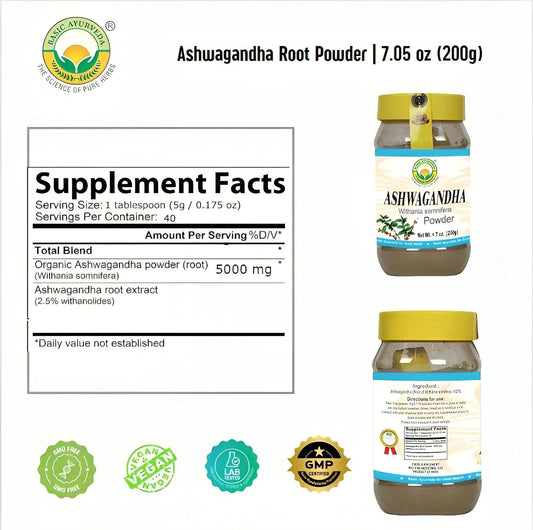 Organic Ayurvedic Ashwagandha Powder for Energy, Focus, and Mood Support - 7.05 Oz (200g)