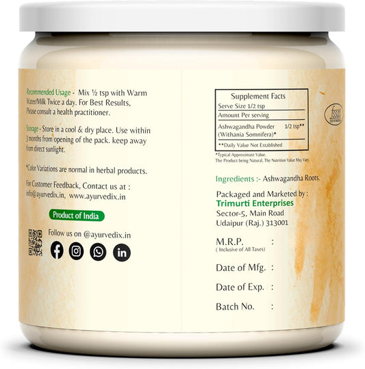 Organic Ayurvedic Ashwagandha Root Powder in Reusable Jar - 5.29oz from India | Withania Somnifera Supplement