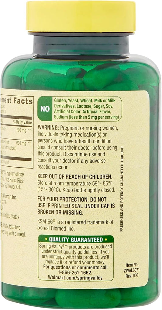 Spring Valley Ashwagandha 1300mg Capsules - Extra Strength Dietary Supplement - 60 Pills by Venancio's Shop