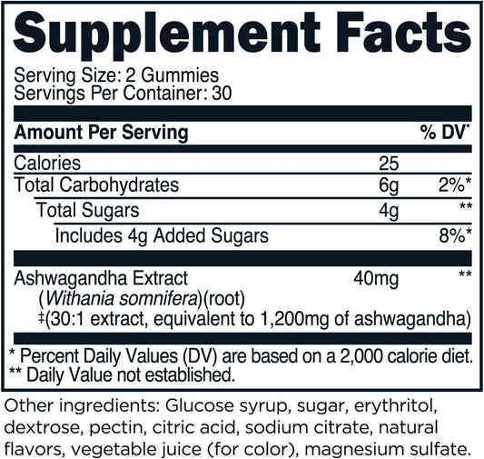 TransformHQ Ashwagandha Gummies 1,200mg - Mixed Berry Flavor, Herbal Extract Supplement - 60 Gummies, 30 Servings - Gluten Free & Non-GMO