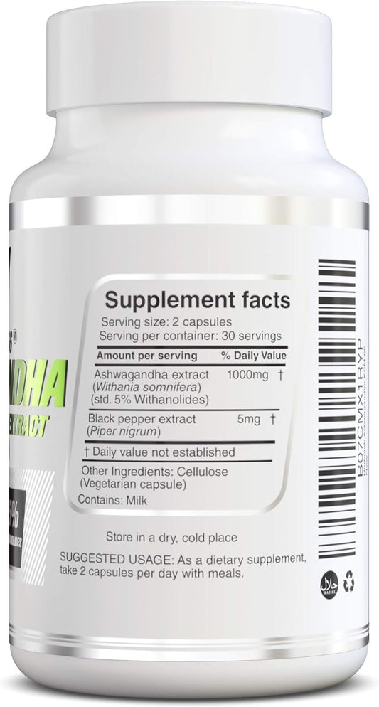 1500mg Ashwagandha with Bioperine & Ginger Root - Cognitive Function Support - 60 Vegan Capsules