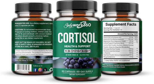 Cortisol Health Support Capsules with Ashwagandha & Rhodiola - Hormone Balance, Sleep Aid, Focus - Non-GMO, Gluten Free - 60 Count