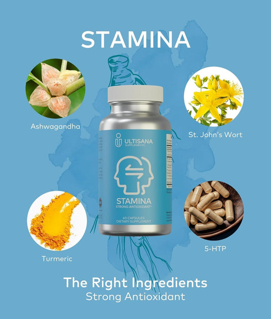 Ultisana Stamina Strong Antioxidant Supplement with Ashwagandha, Turmeric, 5-HTP, B6 & B12 | 60 Capsules