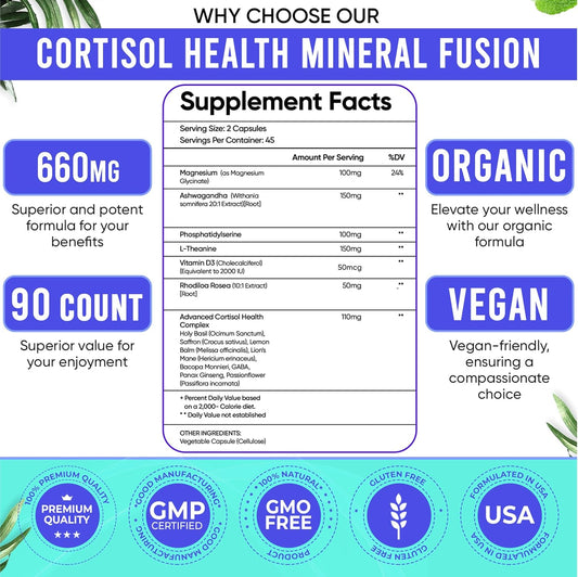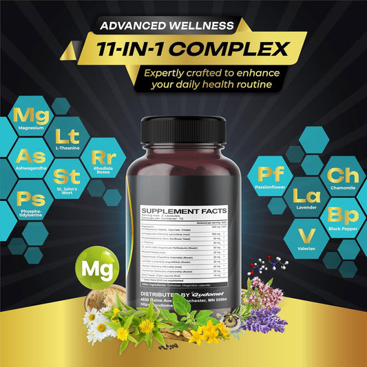 USA Made GUDOMET CORTISOL Wellness Capsules with Magnesium, Ashwagandha, L-Theanine, Phosphatidylserine, Rhodiola Rosea, Passionflower, Lavender, and Chamomile - 150 Count
