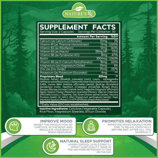 EPN Supplements Nature's RX - Best Cortisol Reducer for Mood, Sleep, and Relaxation - 27 Ingredient Ultra Dosed Formula - Vegan - 60 Capsules