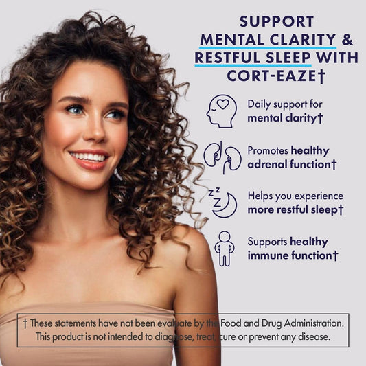 NuEthix Formulations Cort-Eaze Capsules - Cortisol Supplement with Ashwagandha, L-Theanine & Rhodiola Rosea for Relaxation and Deep Sleep - 60 Capsules