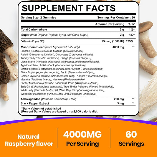120 Count Organic Mushroom Gummies for Memory & Focus, 26-in-1 Complex with Ashwagandha & Lion's Mane.