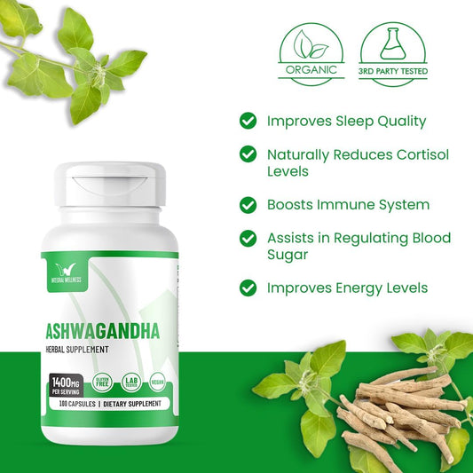 High-Potency Ashwagandha Capsules with Black Pepper Extract - 1400mg (100 Count) | Vegan, Third-Party Tested & Filler-Free
