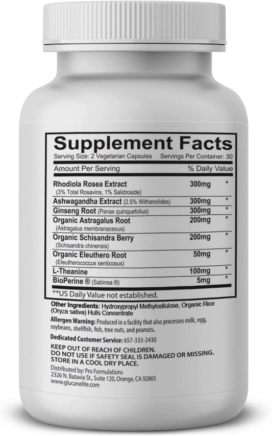 Pro Formulations MD Adaptogen Elite - 60 Vegetarian Capsules - Supports Balanced Cortisol Levels and Natural Energy - Infused with Rhodiola, Ashwagandha, Astragalus, Schisandra, Eleuthero, L-Theanine