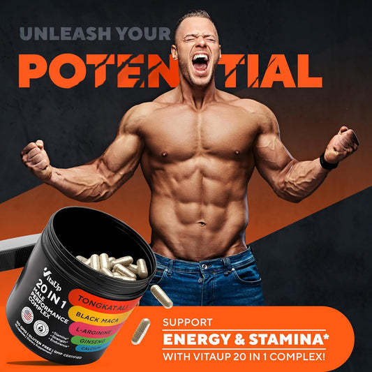 USA Made VitaUp Tongkat Ali Men's Supplement Complex with Astragalus & Black Maca Root - 90 Capsules for Strength & Endurance