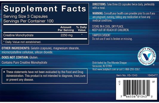 300 Capsules of BodyTech Creatine Monohydrate for Enhanced Performance and Muscle Growth
