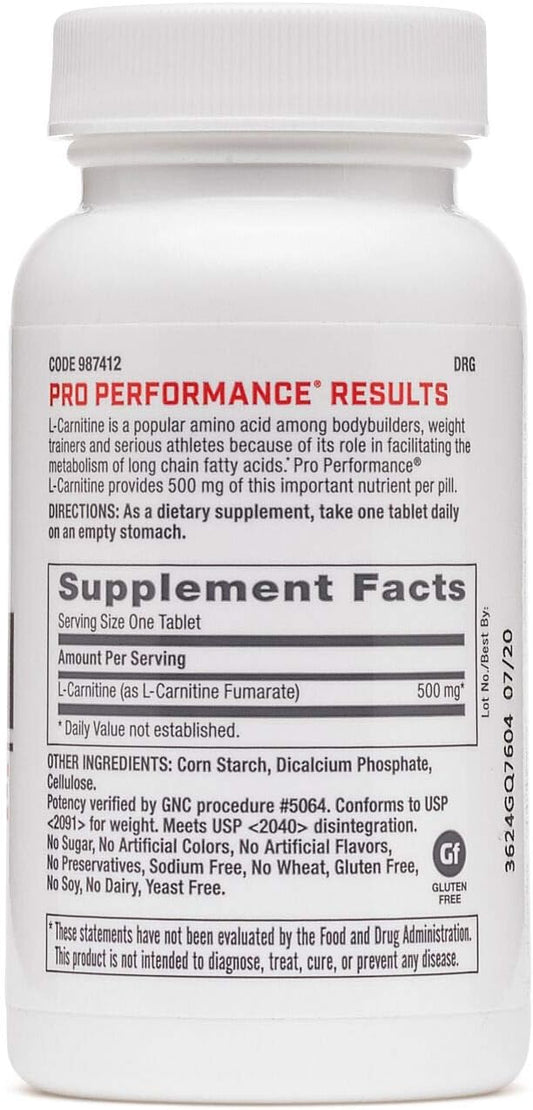 60 Tablets GNC Pro Performance L-Carnitine for Muscle Recovery Support