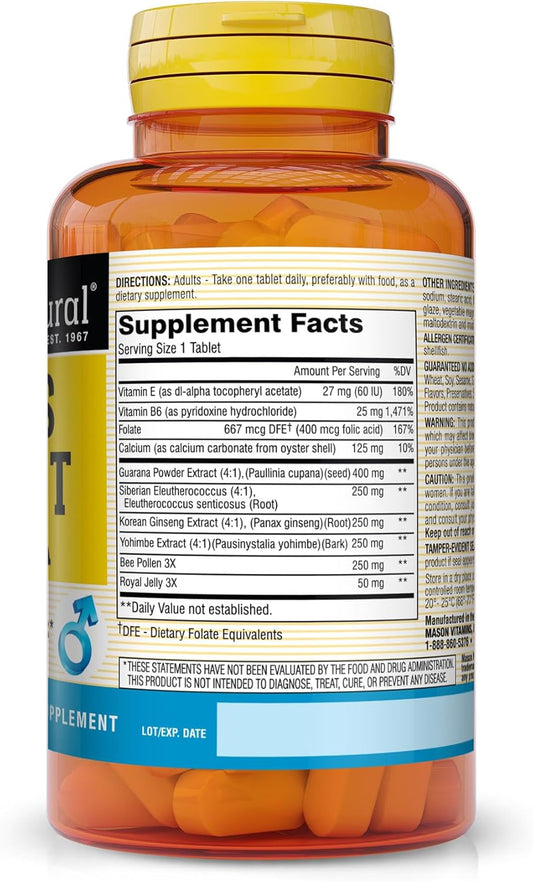 Men's Energy and Performance Support Herbal Complex Supplement - Boost Endurance, Stamina, and Vitality - 60 Tablets