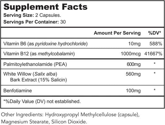Nerve Support Supplement with Pea, White Willow, B-Vitamins - Advanced Nerve Health - 60 Capsules, Made in USA