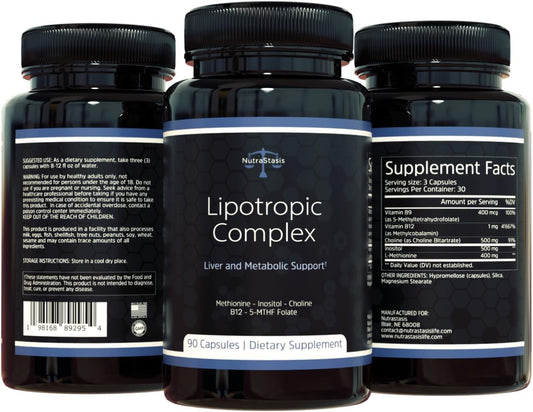Nutrastasis Lipotropic Complex - Liver Support, Detox, Metabolism Boost, Weight Loss - Methylated B12, B9, Inositol Choline Methionine - Hormone Balance