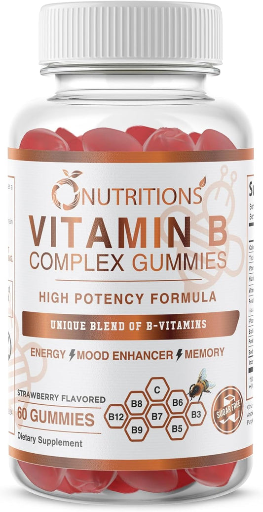 Vegan Gummies with Vitamin B Complex, B12, Biotin, Niacin, Folate - Stress Relief, Energy Boost, Immune Support - Sugar Free - 1 Pack