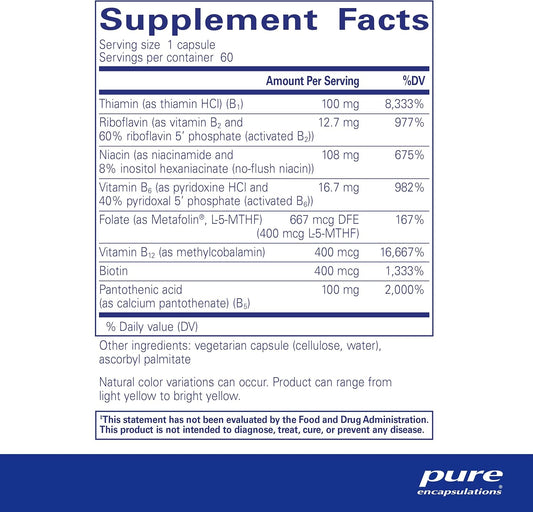 Pure Encapsulations B-Complex Plus: Neurological & Cardiovascular Health Support with B Vitamins, Vitamin B12 & More - 60 Capsules