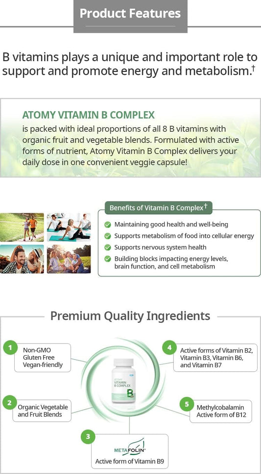 Atomy Vitamin B Complex: Vegan, Gluten Free, Non GMO Formula