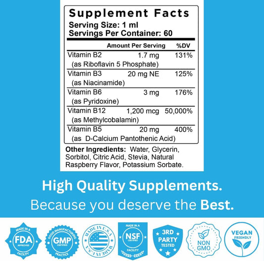 Energy Boosting Vegan Liquid B Complex Vitamin Supplement - 2 Month Supply, Non-GMO, Gluten Free - Staver Health B12 Plus
