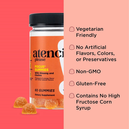 Ginseng and Choline Gummy Supplement for Women and Men - Pineapple and Orange Flavor - 60 Count