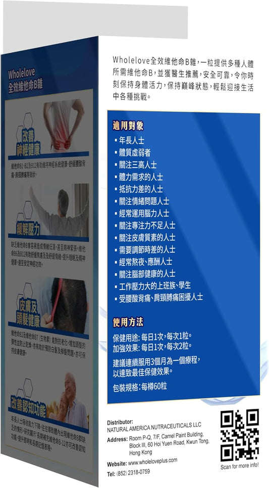 NOTO WholeLoveMed Vitamin B Complex Capsules - Support Emotional Relief, Cell Vitality, Immune System, Energy, & Metabolism - 60 Count, 1-2 Months Supply