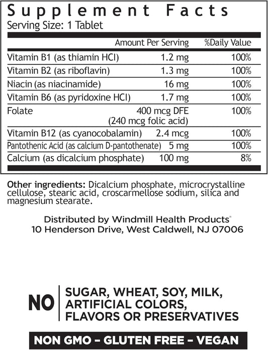 Windmill Natural Vitamins B Complex: Energy Boost & Metabolism Support - 100 Tablets