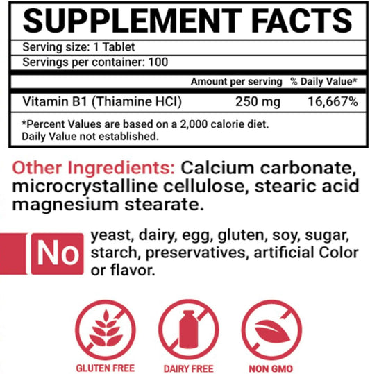Peter's Choice B1 250 mg Tablets - 100 Count Dietary Supplement for Energy and Immune Support