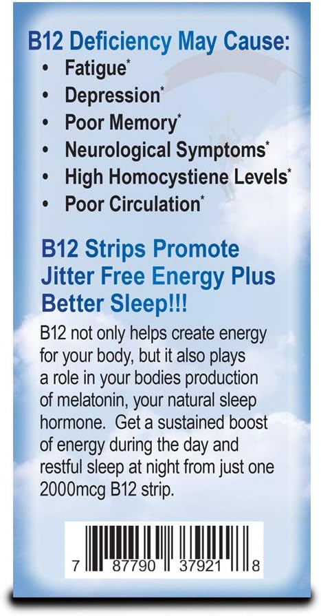 Essential Source Vitamin B12 Strips - Energy Supplement with 2000mcg of Methylcobalamin, B6, Folate & Biotin - Support Nerve & Brain Health, Stress Relief, Sleep - Winter Berry Flavor, 90 Day Supply