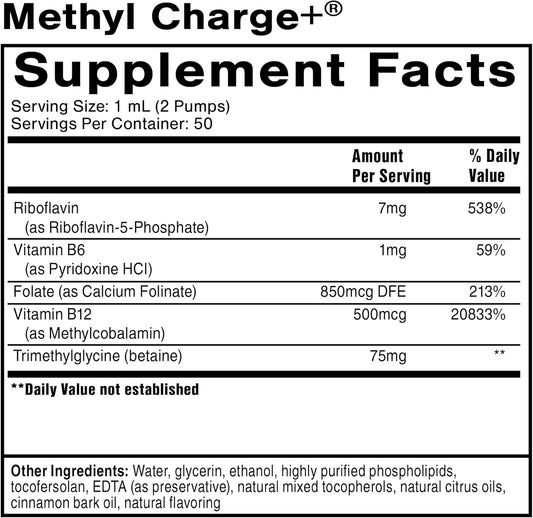 Methyl Charge Supplement for Methylation, Liver Detox & Energy - Folate, B12, B6, Riboflavin, TMG - Vegan (50ml)