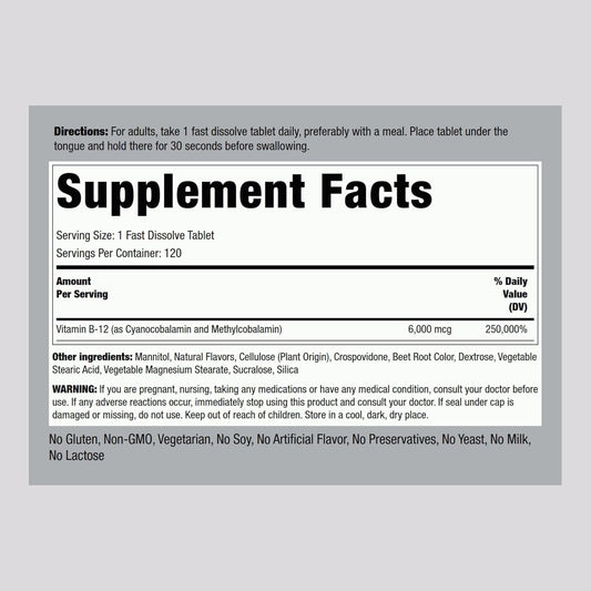 Piping Rock Berry Flavor Sublingual B12 Complex 6000 mcg Tablets - 120 ct | Vegetarian, Non-GMO, Gluten-Free