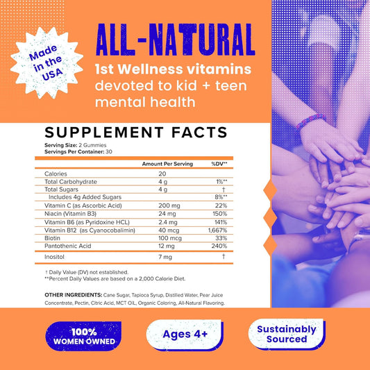 All Natural Vegan Energy Gummies for Kids & Teens with Biotin, Vitamin B3, B6, B12 - Strawberry Flavor - 60 Count
