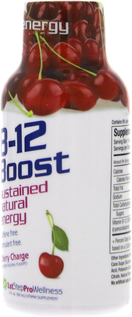 Energy-Boosting B-12 Cherry Charge Liquid Supplement - 12 Bottles (2 fl oz each)