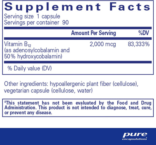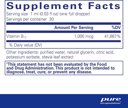 Pure Encapsulations B12 Liquid | 1 fl. oz. Bottle of 1,000 mcg Methylcobalamin Vitamin B12 Supplement for Nerve, Immune, Energy, Cognitive Health