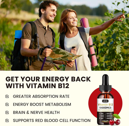 Triple Liquid Vitamin B12 Complex 10000 mcg Drops | Methylcobalamin & Adenosylcobalamin & Hydroxo Blend | Long-Lasting Energy & Healthy Metabolism | Cherry Flavor, New Formula