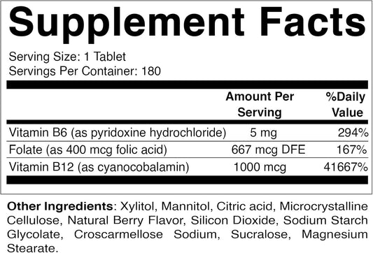 Vitamatic Folic Acid B12 B6 Tablets - Supports Heart Health, Energy, & Red Blood Cells - 180 Fast Dissolve Tablets