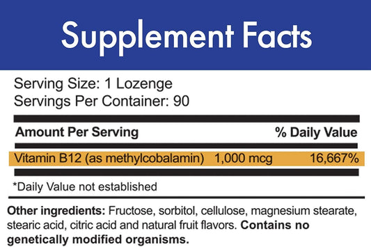 MAX-B12 Lozenges 1000 MCG - Immune, Energy, Brain Support - Stress Relief, Sleep Aid - 90 Count