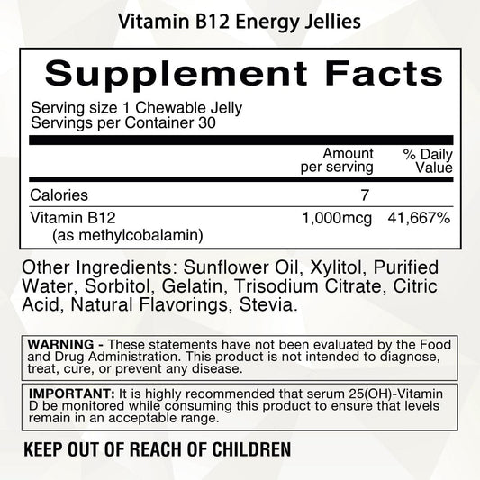 Sugar-Free Fruit Punch Energy Jellies with 1,000 mcg Vitamin B12 for Bariatric Eating (30 Count)
