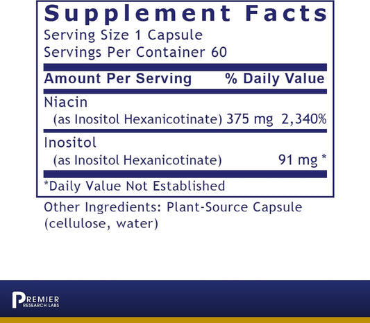 Flush-Free Niacin with Inositol Hexanicotinate - Blood Circulation Support - 60 Vegetarian Capsules