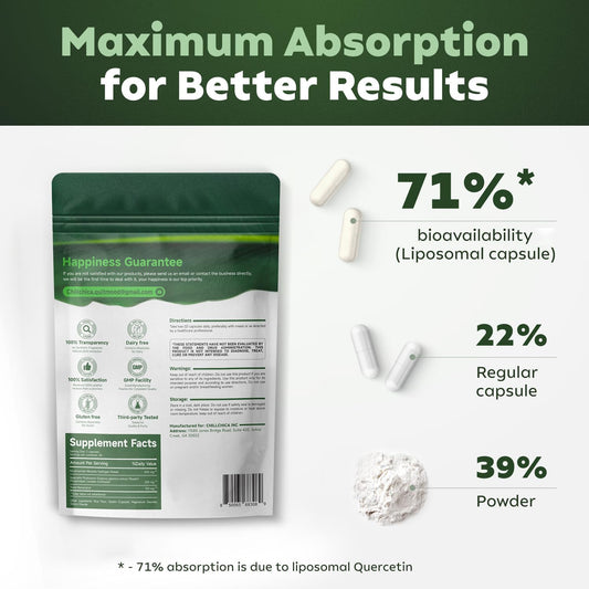 Organic Liposomal NAD+ Supplement with Resveratrol & Quercetin - 500mg NR for Anti Aging & Brain Function - Vegan & Non GMO - 45 Day Supply
