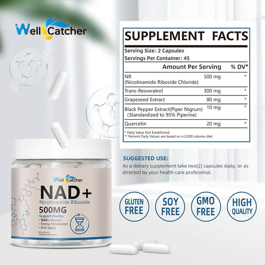 Energy and Focus Boosting NAD+ Supplement with Nicotinamide Riboside 900mg - 80 Capsules for Anti-Aging and Cellular Health