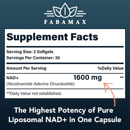 High Absorption 1600mg Liposomal NAD+ Supplement for Anti-Aging & Energy Support - 98% Pure NAD+ Alternative to NR or NADH - 180 Softgels