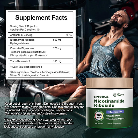 900MG Civavo NAD+ Supplement with Nicotinamide Riboside, Liposomal Resveratrol, and Quercetin for Vitality & Cognitive Function