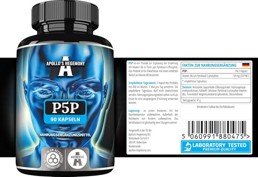 Apollo's Hegemony Pyridoxal-5-Phosphate 50mg - 90 Vegan Capsules - Vitamin B6 Supplement for Nervous System & Mood Support - 3 Month Supply