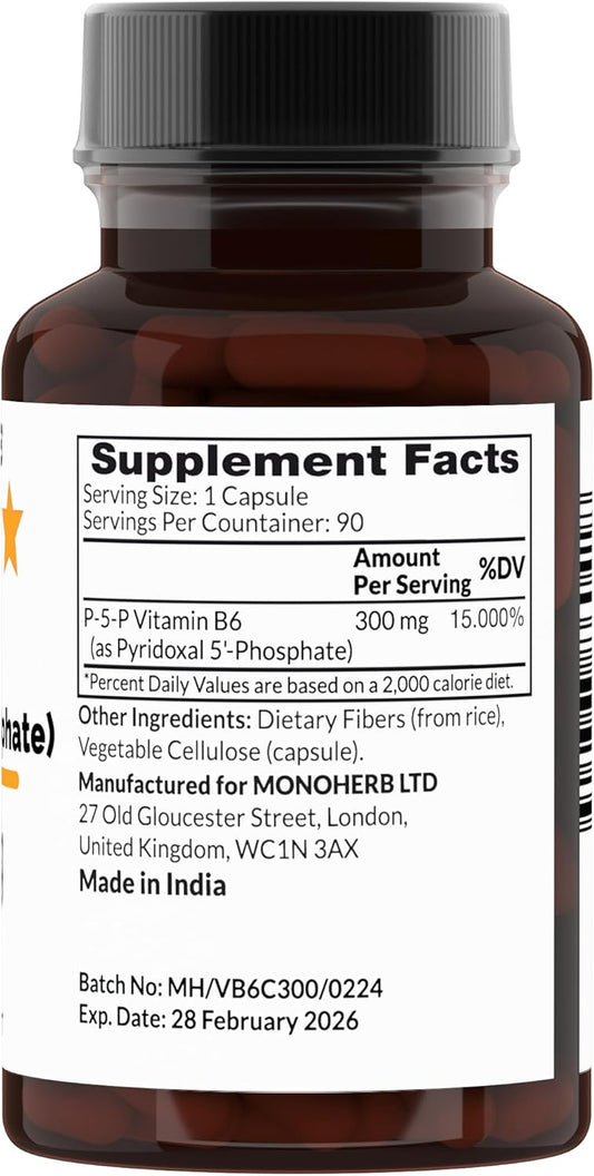 MONOHERB P5P Activated Vitamin B6 300mg - 90 Vegetarian Capsules - Highly Bioavailable Pyridoxal 5-Phosphate
