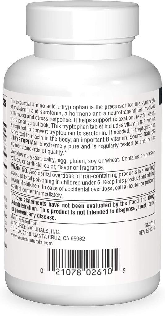 Source Naturals L-Tryptophan 1000mg with Vitamin B-6 - 90 Tablets for Mood, Relaxation, and Sleep Support