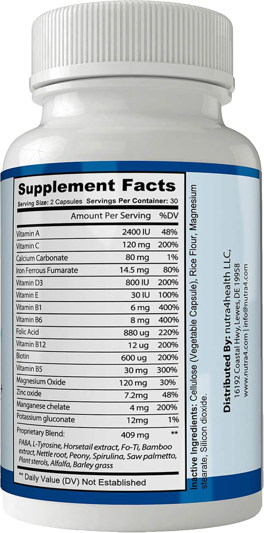 Advanced Clear Nails Plus Supplement with Biotin - Hair Growth Vitamins - Gluten Free 60 Capsules - Extra Strength Formula for Hair, Lashes, Skin, and Nails