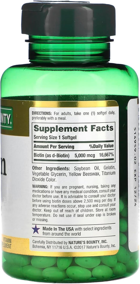 Biotin Vitamin Supplement for Cellular Energy & Hair, Skin, Nails - 5000 mcg, 150 Softgels