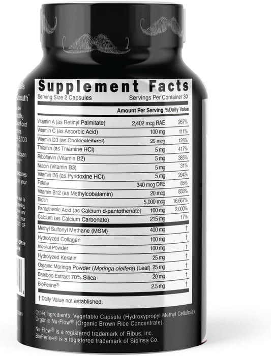 Beard Growth and Men's Skin & Nails Supplement with 5,000mcg Biotin, Vitamin C, D & B-Complex, Hydrolyzed Collagen Veggie Capsules - Non-GMO, Gluten-Free